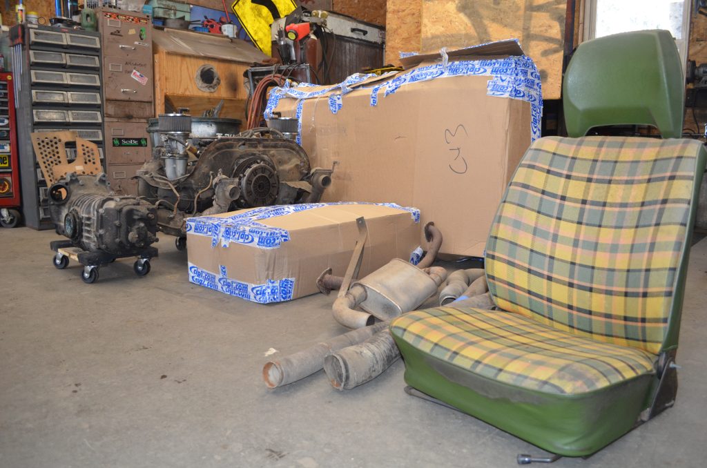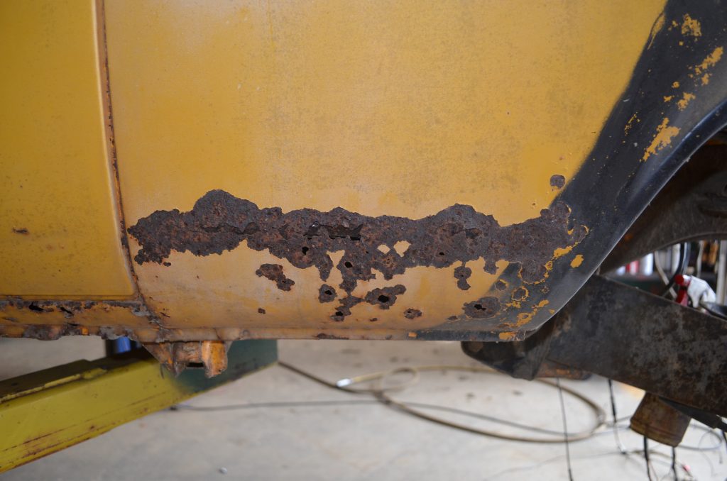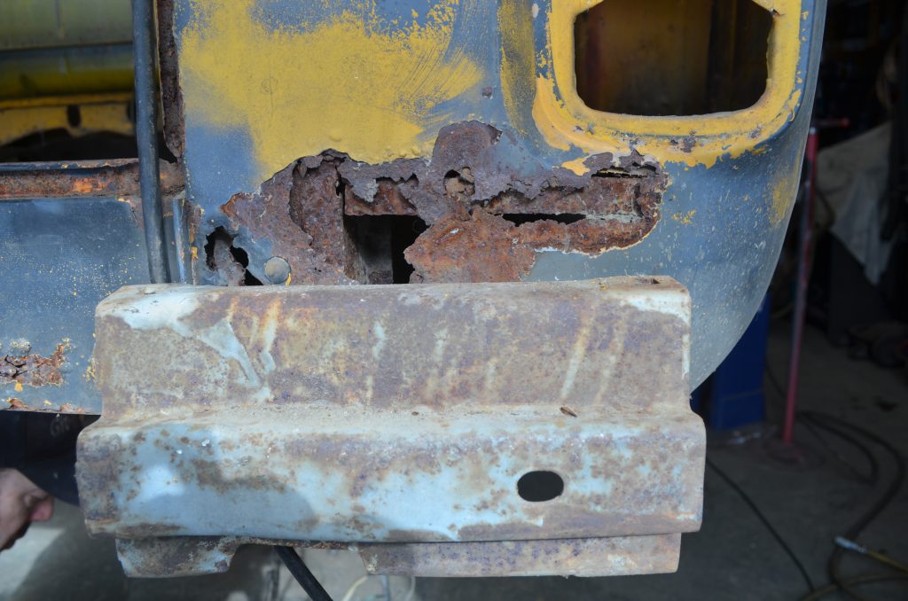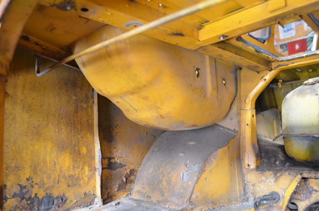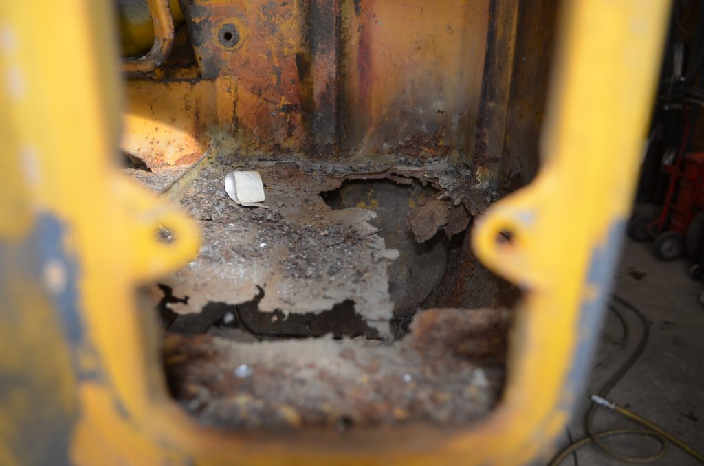 This week Evan has removed the engine and transmission. Everything is coming off and out so he can focus on the shell and body work. This is probably the most overwhelming part of the job as Evan is assessing the rust damage and making a to do list. I walked into the shop to get some photos. “Hey Evan, How’s it goin’ so far?”